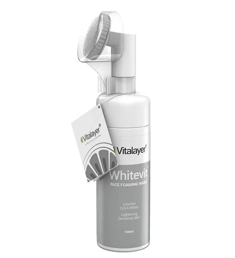 فوم پاک کننده صورت وایت ویت 150میل ویتالیر شویندهای به شکل کف بوده که به خوبی تمام آلودگیهای پوست را پاکسازی میکند. فوم پاک کننده ویتالیر بهترین شوینده برای افرادی است که لک و تیرگی دارند. این محصول با دارا بودن ویتامین C در ترکیبات خود قادر است لک و تیرگی را کاهش داده و پوست را شفاف و درخشان کند. یکی از مزایای خرید فوم پاک کننده ویتالیر دارا بودن برس نرم سیلیکونی این محصول است که علاوه بر پاکسازی عمیق پوست جریان خون مویرگی را افزایش داده و با ماساژ پوست در فرآیند شفاف سازی آن موثر است. این محصول فاقد پارابن، مواد صابونی و مواد حساسیتزا بوده و تنفس سلولی را بهبود میبخشد. این فوم پاک کننده از روغن درخت چای به جهت خاصیت ضد میکروبی و کنترل چربی پوست بهره گرفته است. پس از استفاده از این محصول پوست به واسطه گلیسیرین موجود در این فوم نرم و لطیف شده و شاداب و سرزنده خواهد شد.